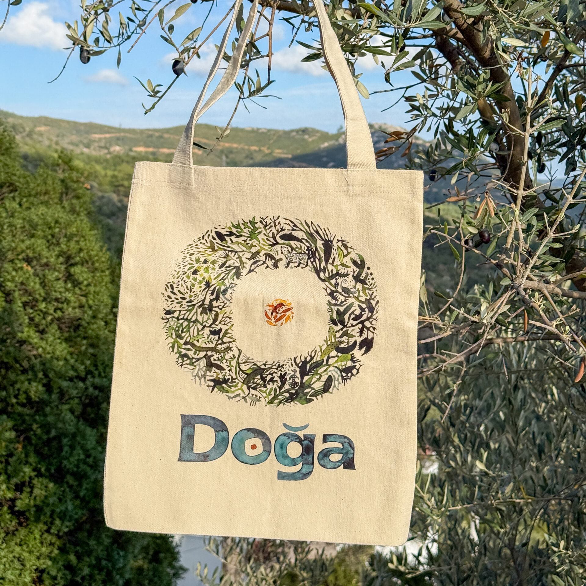 Doğa’nın çantası, Ön yüzünde Doğa Derneği’nin logosu bulunan bu bez çanta 42×36 cm ölçülerinde gabardin kumaştan yapıldı. Tercihini doğadan yana kullanmak isteyenler için ideal bir çanta.