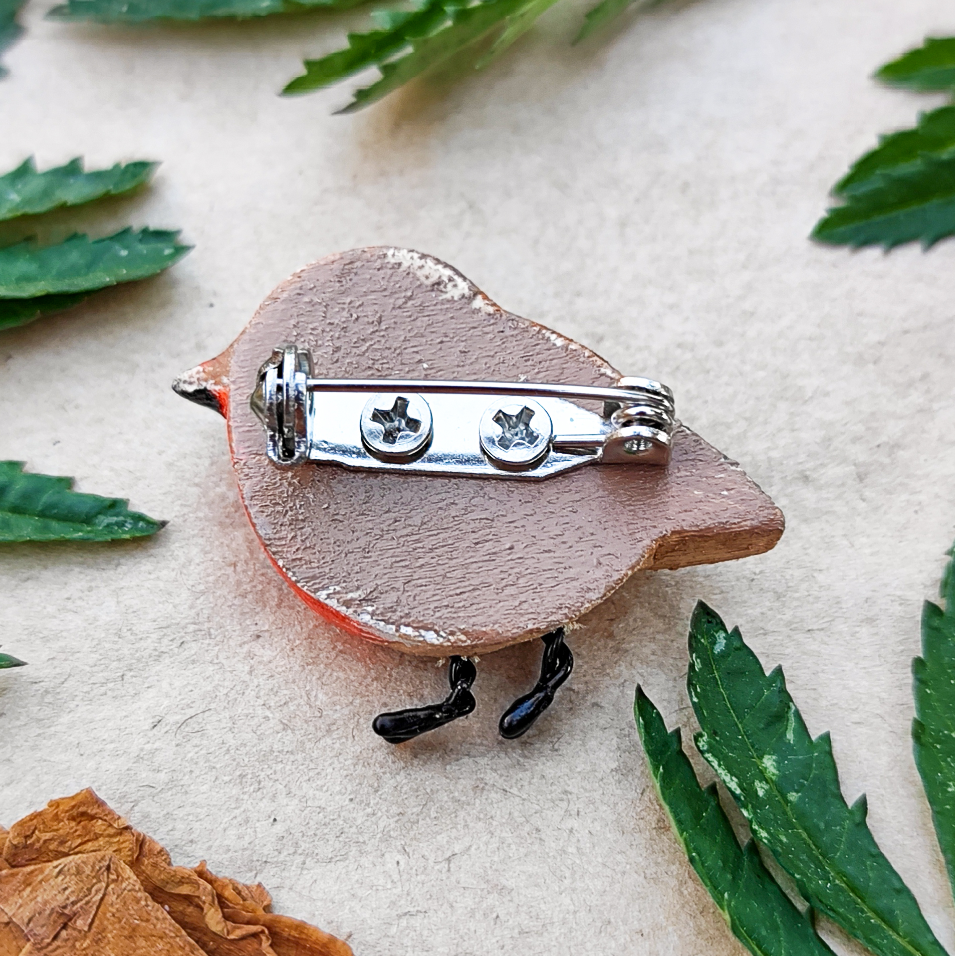 · İki adet vida ile ahşaba sabitlenen broş aparatı, yüksek dayanıklılık ve güvenli kullanım sunar; giysi, şapka, fular ve çantalarınızda keyifle taşıyabilirsiniz.